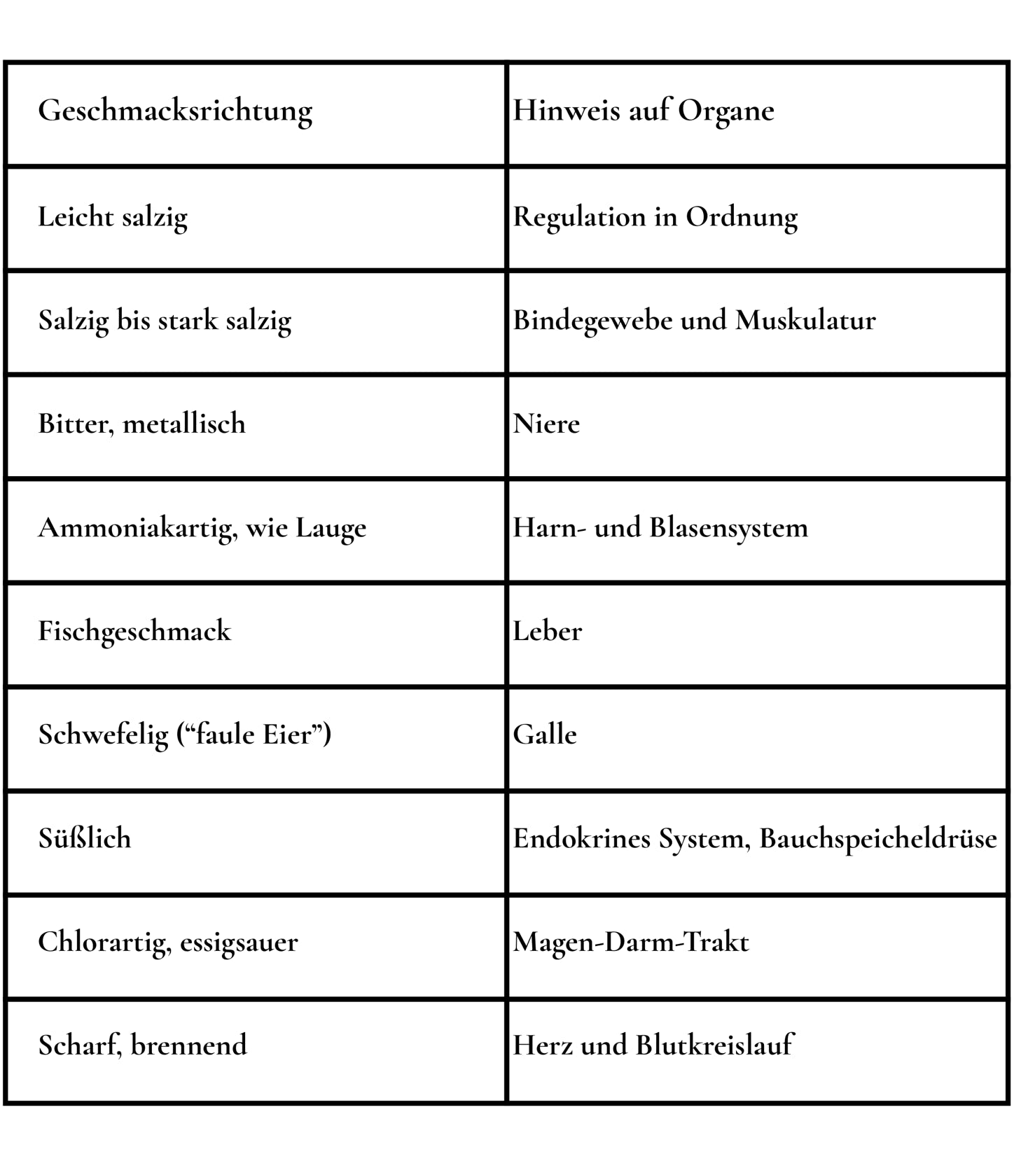 Der Körper reagiert mit einem subjektiven Geschmack, abhängig von seiner aktuellen Stoffwechsellage, Organbelastung und Zellregulation.
